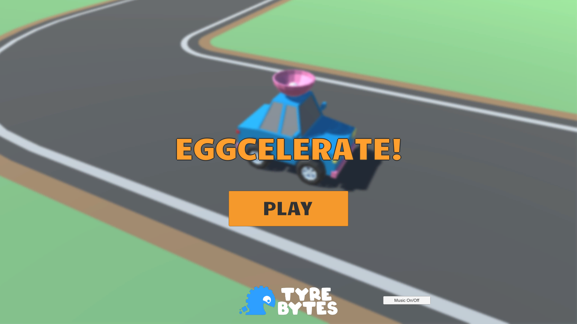 Timing and scoring was the next major feature to be added which made use of some box colliders to tell the racecar what checkpoint was hit. This allowed the car to know where it was and ensure a complete was driven before increasing lap count or time. Displaying this, and the retry screen, to the player was confusing for me as a first time Unity developer. I had played with Unity UI for about 30 minutes prior but in that previous project I found it didn’t handle resolution changes very well. Eggcelerate! did not handle this much better, but I certainly tried. (There have since been some notes that the title screen behaves odd on some resolutions.)