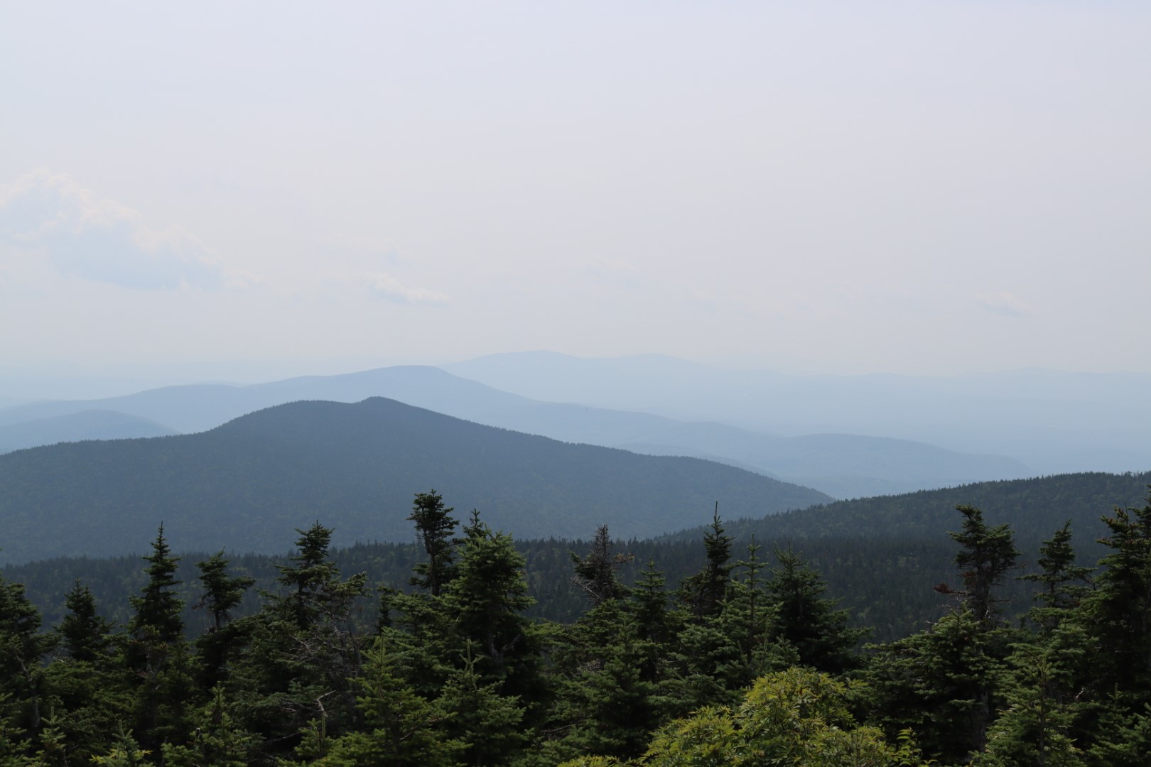 The climb continued with a reasonable grade, which very slowly increased as the trail progressed deeper into the forest. Soon the Bucklin Trail that I was hiking along came to a junction with The Long Trail, and just a few tenths of a mile further was a shelter with tent pads nearby and a fair number of hikers, some thru-hiking the entirety of the Long Trail. From here it was only a couple more tenths of a mile to the summit, but at a much steeper place.