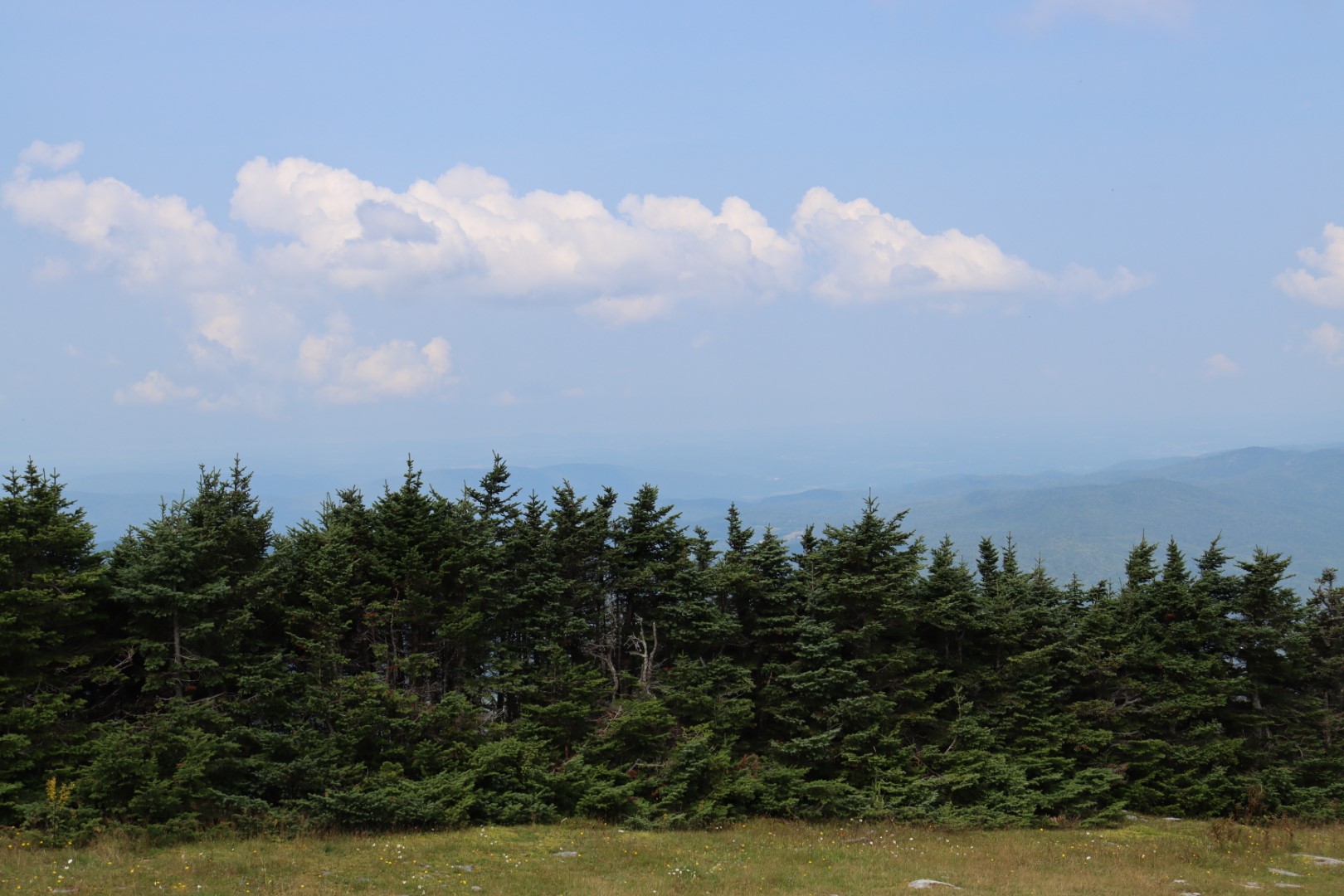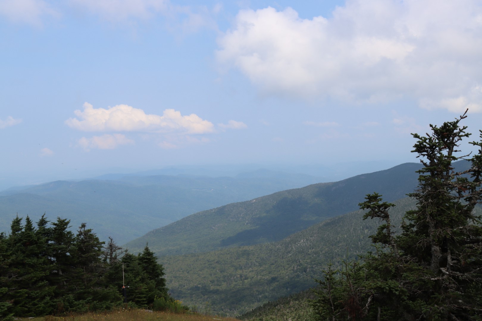 The trail was well maintained and walked up a reasonable grade. It wasn’t flat, but also not a staircase. The maple trees turned into birch trees and eventually as elevation increased into evergreens. The Jerusalem Trail ended at a junction with The Long Trail which remained on the ridge line. This is where I saw the first hikers of the day, passing by the opposite direction, likely thru-hiking the long trail.