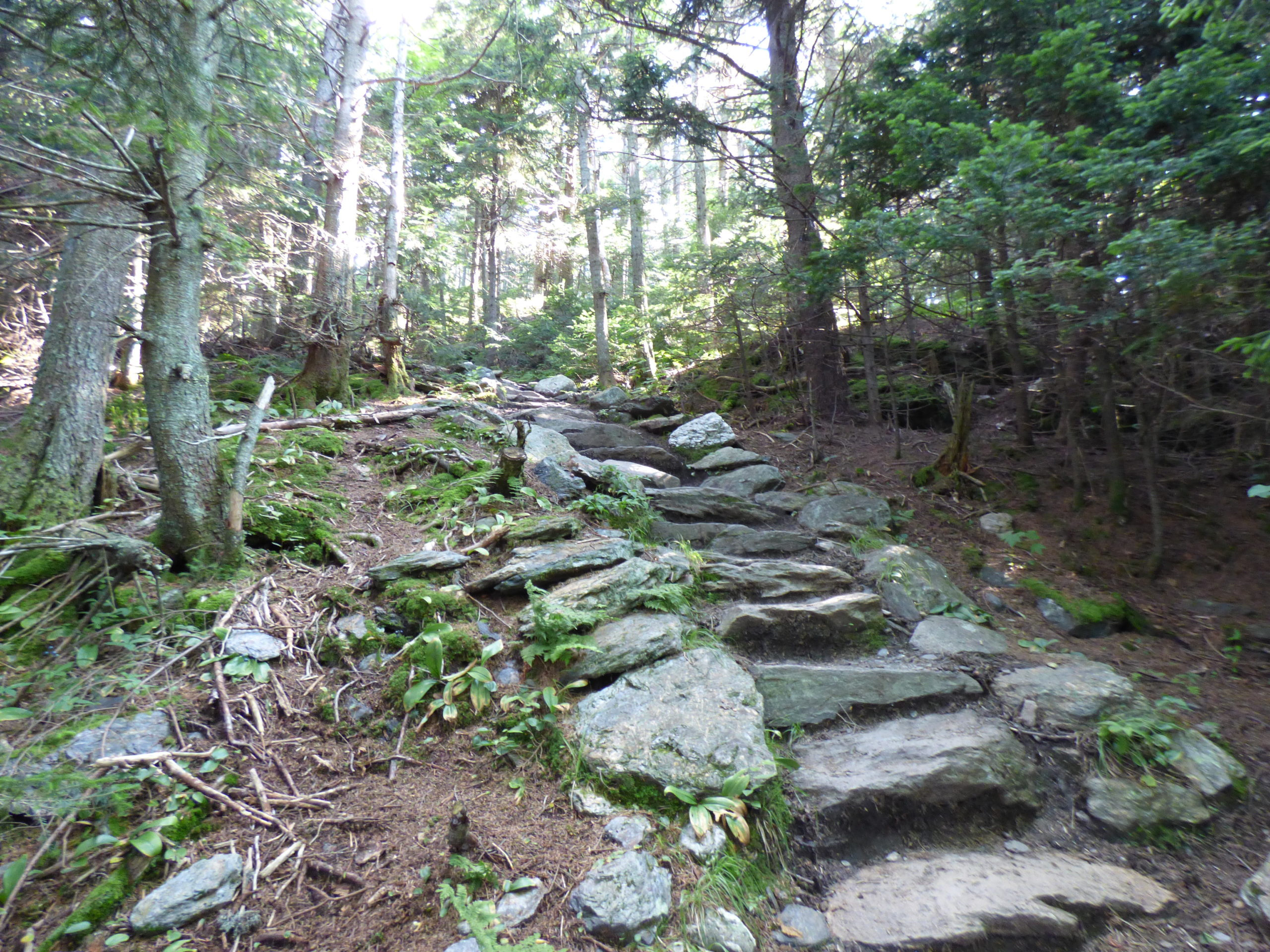 The trail started up right out of the gate, but also had areas of rest that flattened off to a slight grade. There was a sign recommending hikers to not short-cut the switchbacks as doing so damages the surrounding area. A switchback is where the trail goes back and forth along the side of the mountain making for a longer but less steep path. I was looking forward to this after Mount Mansfield and Camels Hump basically had stair-stepping the entire way.