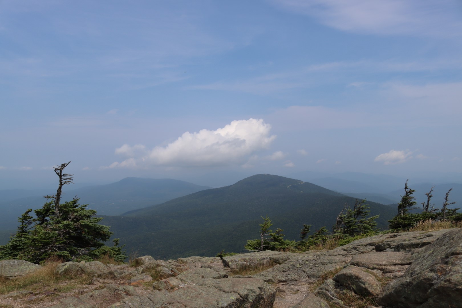 The climb continued with a reasonable grade, which very slowly increased as the trail progressed deeper into the forest. Soon the Bucklin Trail that I was hiking along came to a junction with The Long Trail, and just a few tenths of a mile further was a shelter with tent pads nearby and a fair number of hikers, some thru-hiking the entirety of the Long Trail. From here it was only a couple more tenths of a mile to the summit, but at a much steeper place.