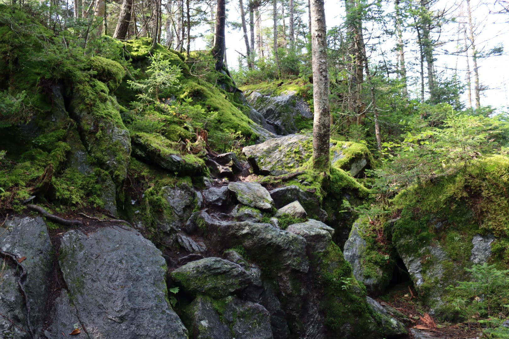 The trail was well maintained and walked up a reasonable grade. It wasn’t flat, but also not a staircase. The maple trees turned into birch trees and eventually as elevation increased into evergreens. The Jerusalem Trail ended at a junction with The Long Trail which remained on the ridge line. This is where I saw the first hikers of the day, passing by the opposite direction, likely thru-hiking the long trail.